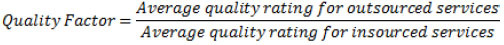 Using an approach adopted by Cali, J et al [15], the financial costs of outsourcing were multiplied by the quality factor to produce quality-adjusted costs of in-sourcing using the formula below: